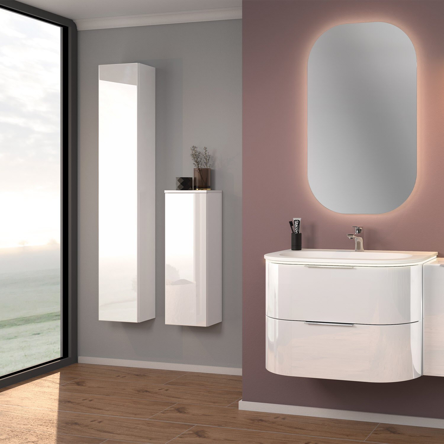 Sanipa Reflection Aluminium-Spiegelschrank ARND 80 mit LED-Leuchtpanel