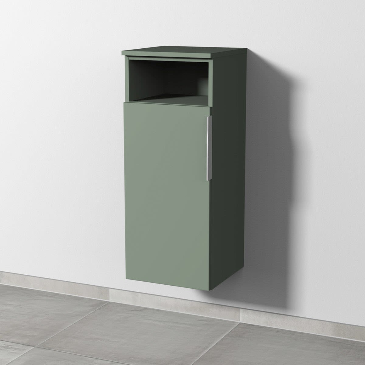 1 Tür, Anschlag links, 1 offenes Fach, mit Aufsatz-Griff