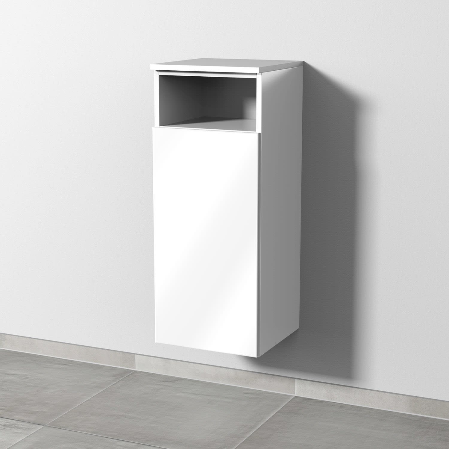 Sanipa 3way Mittelschrank 35 cm, 1 Tür mit Anschlag links, 1 offenes Fach, Push to open