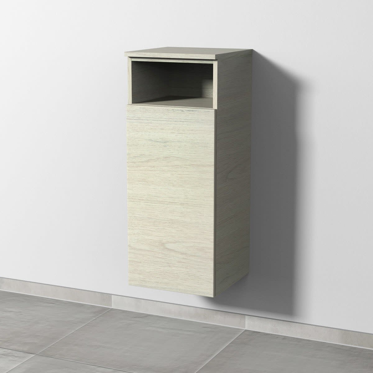 Sanipa 3way Mittelschrank 35 cm, 1 Tür mit Anschlag links, 1 offenes Fach, Push to open