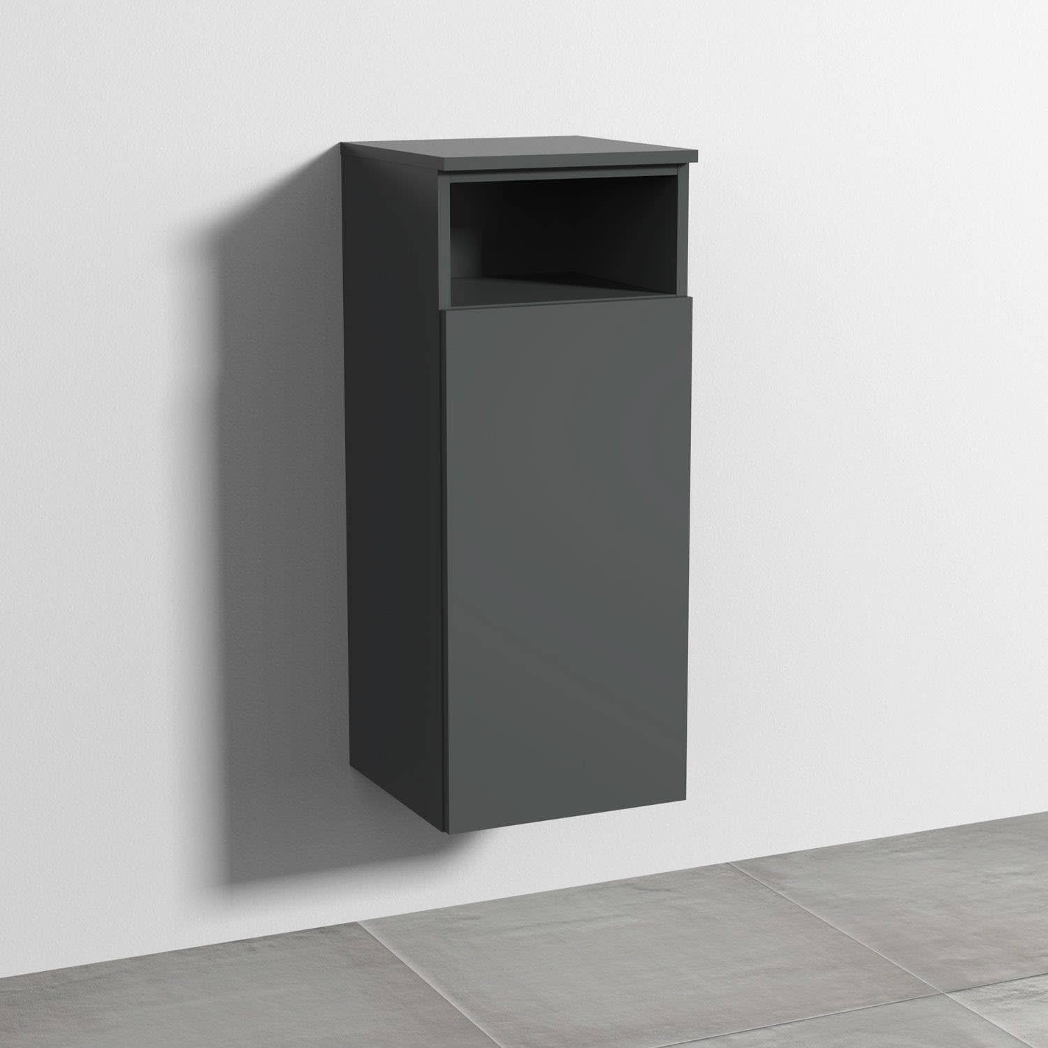 Sanipa 3way Mittelschrank 35 cm, 1 Tür mit Anschlag rechts, 1 offenes Fach, Push to open