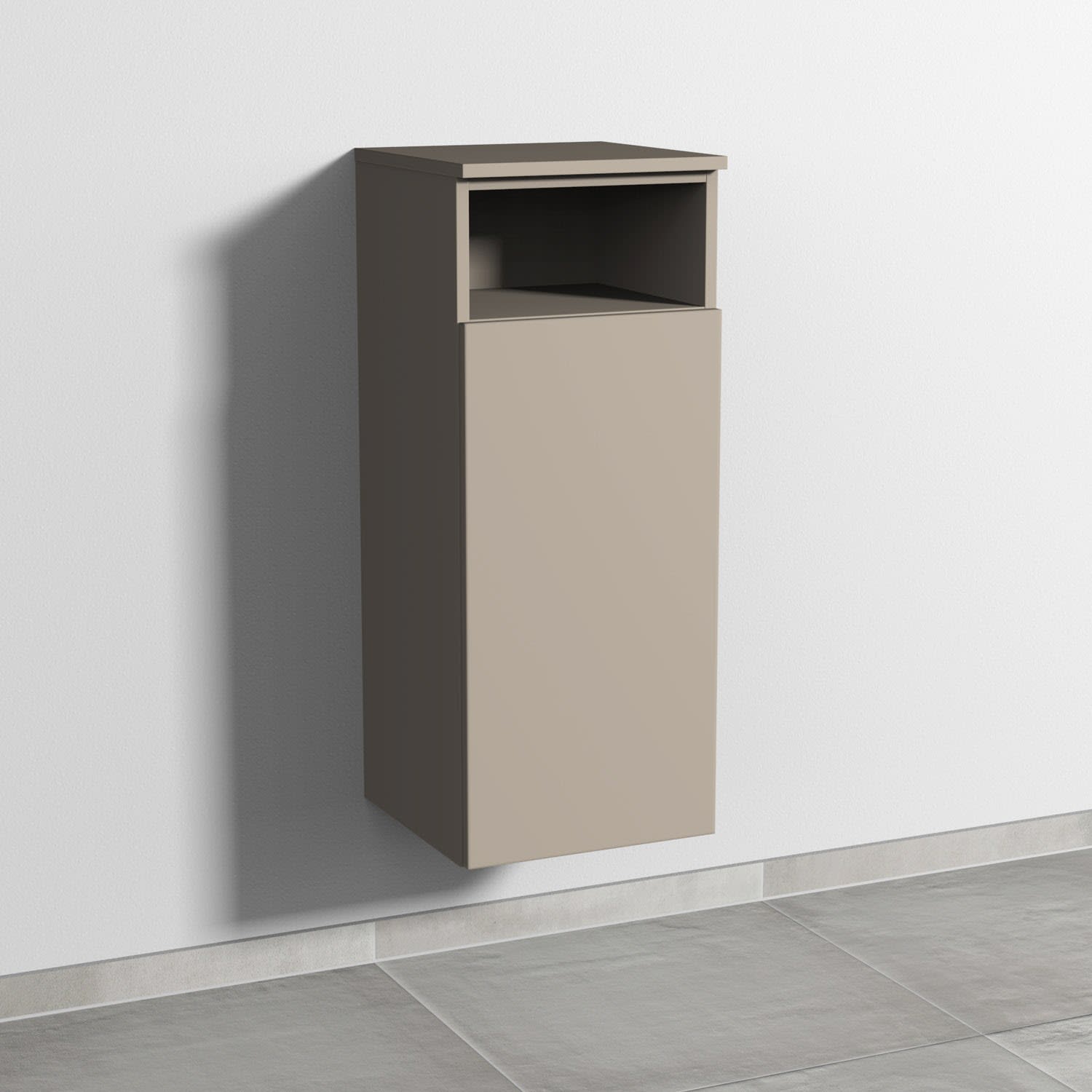 Sanipa 3way Mittelschrank 35 cm, 1 Tür mit Anschlag rechts, 1 offenes Fach, Push to open