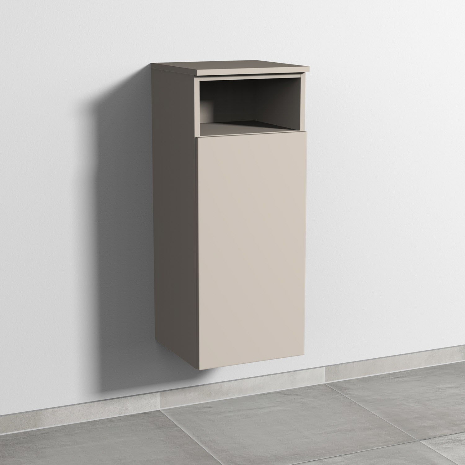 Sanipa 3way Mittelschrank 35 cm, 1 Tür mit Anschlag rechts, 1 offenes Fach, Push to open