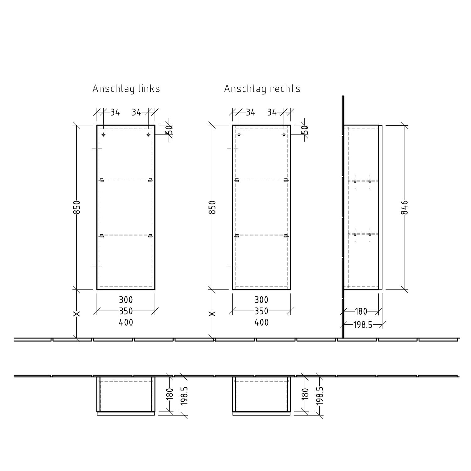 Sanipa 3way Hochschrank 30 cm, 1 offenes Fach, 2 Türen mit Türanschlag links