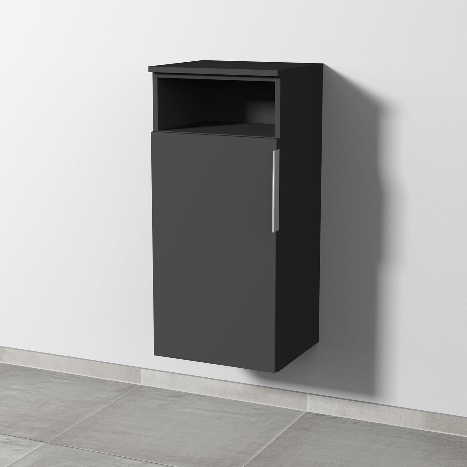 1 Tür, Anschlag links, 1 offenes Fach, mit Aufsatz-Griff
