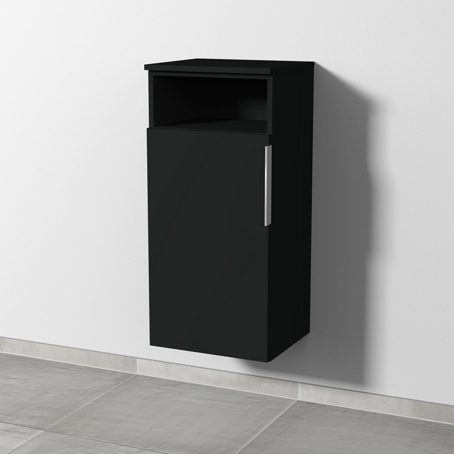 1 Tür, Anschlag links, 1 offenes Fach, mit Aufsatz-Griff