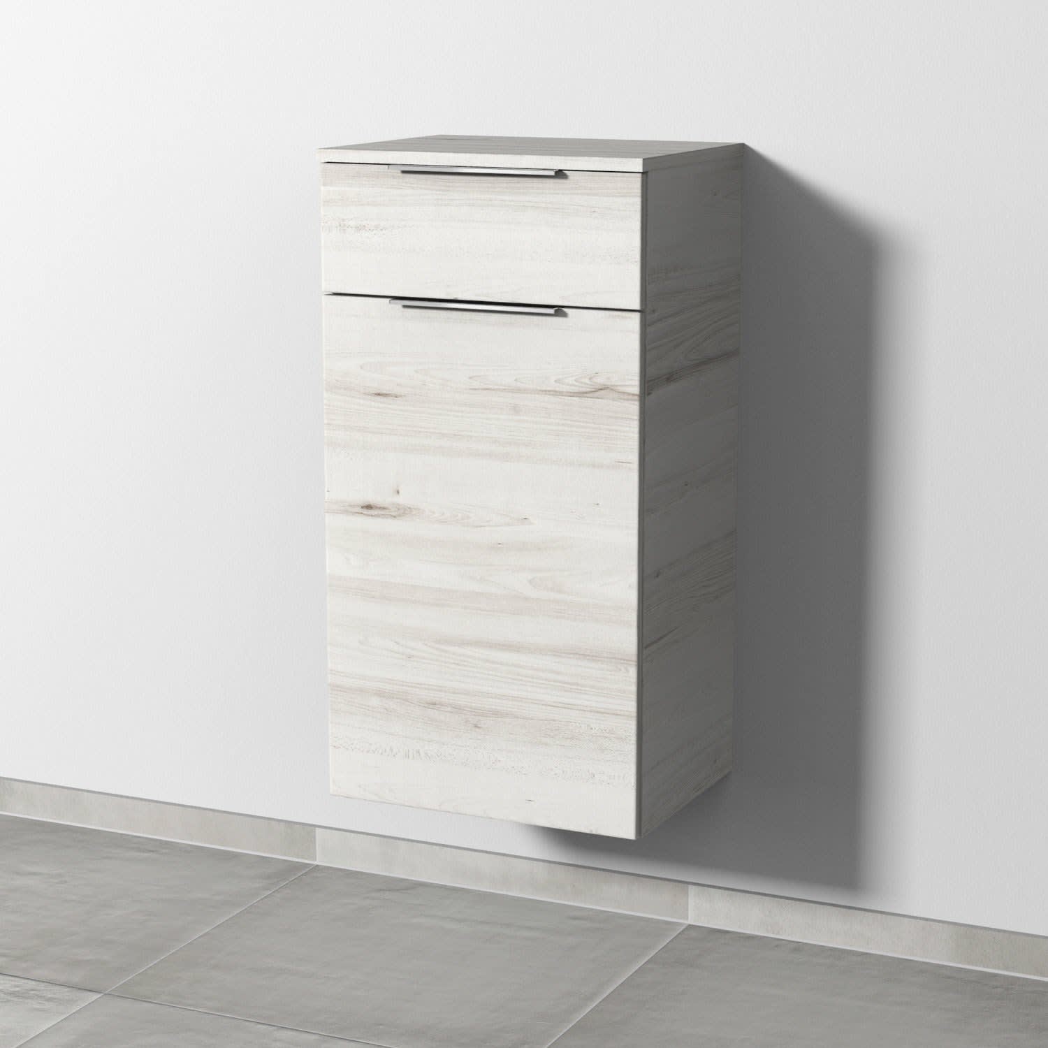Sanipa 3way Mittelschrank 45 cm, 1 Auszug, 1 Wäschekorbklappe, mit Aufsatz-Griff