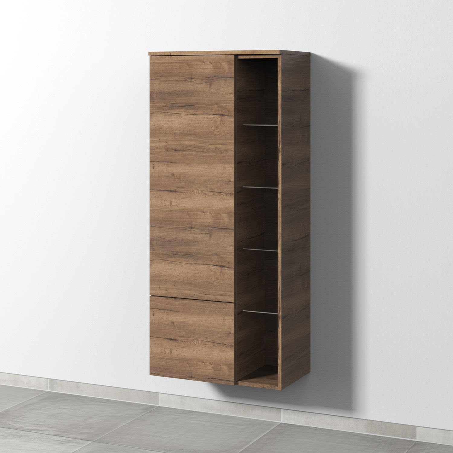 Sanipa 3way Stauraumschrank 60 cm, 1 Tür Anschlag links, Push to open, 1 offenes Fach, 1 Auszug