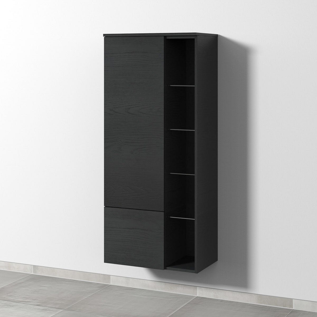 Sanipa 3way Stauraumschrank 60 cm, 1 Tür Anschlag links, Push to open, 1 offenes Fach, 1 Auszug