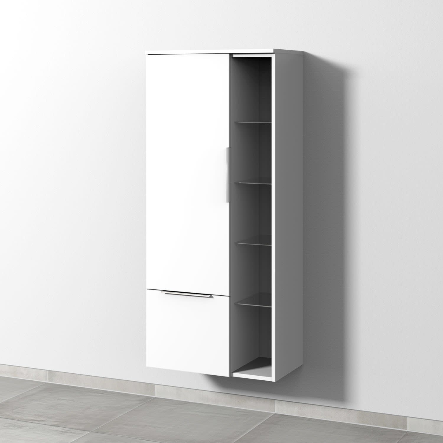 Sanipa 3way Stauraumschrank 60 cm, 1 Tür Anschlag links mit Aufsatzgriff, 1 offenes Fach, 1 Auszug
