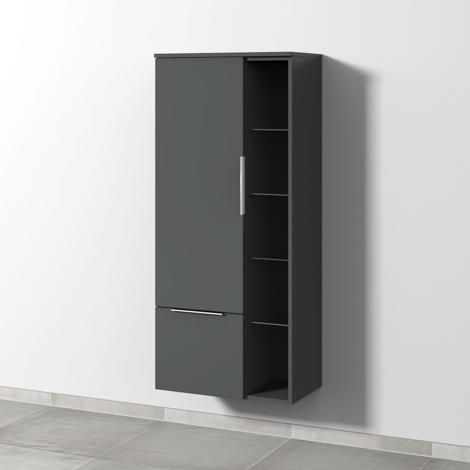Sanipa 3way Stauraumschrank 60 cm, 1 Tür Anschlag links mit Aufsatzgriff, 1 offenes Fach, 1 Auszug