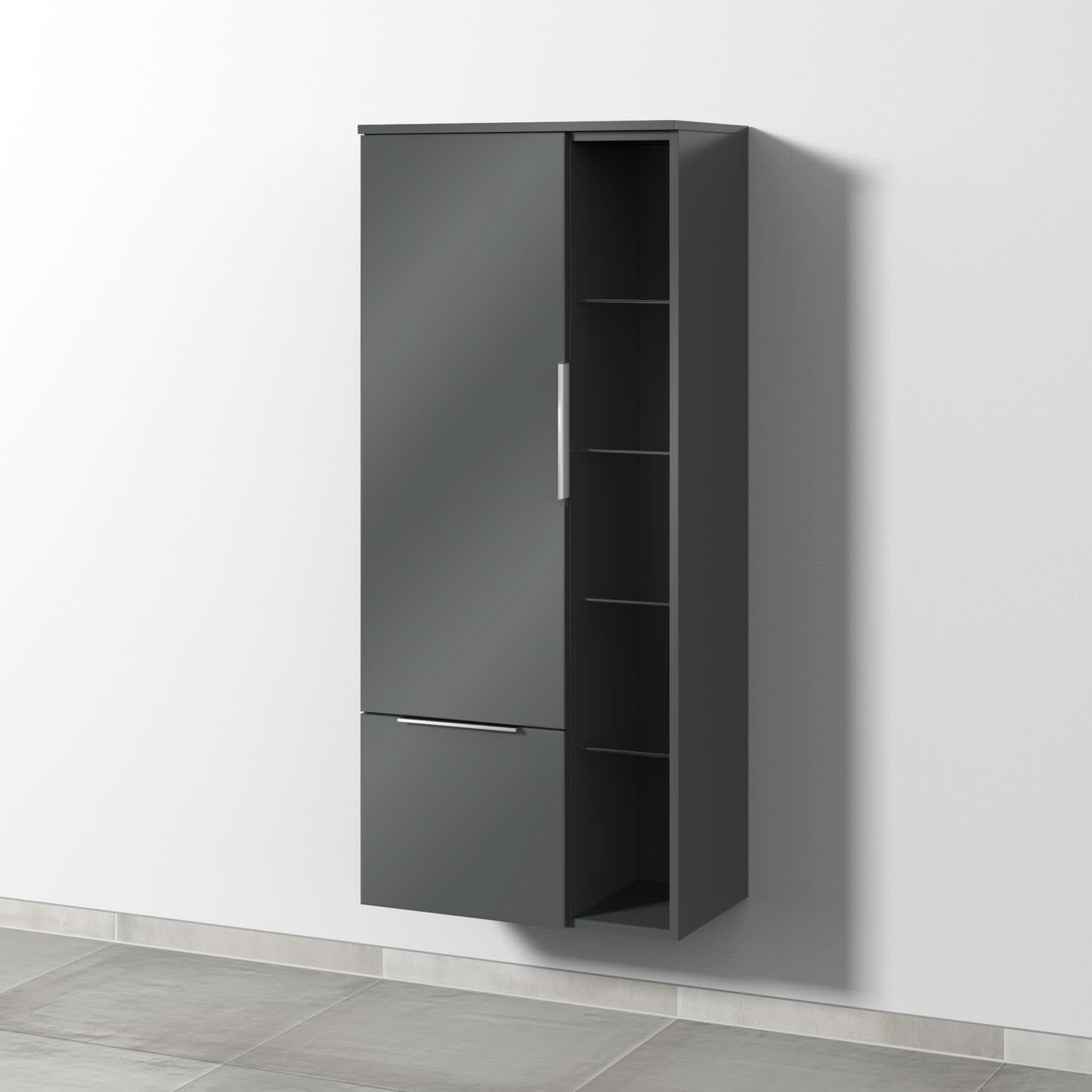 Sanipa 3way Stauraumschrank 60 cm, 1 Tür Anschlag links mit Aufsatzgriff, 1 offenes Fach, 1 Auszug