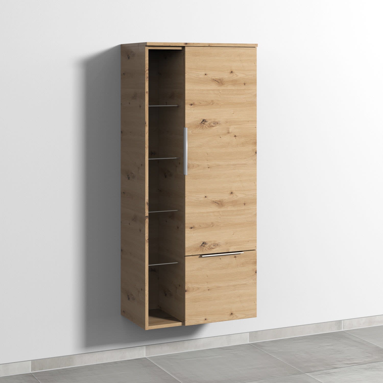 Sanipa 3way Stauraumschrank 60 cm, 1 Tür Anschlag rechts mit Aufsatzgriff, 1 offenes Fach, 1 Auszug
