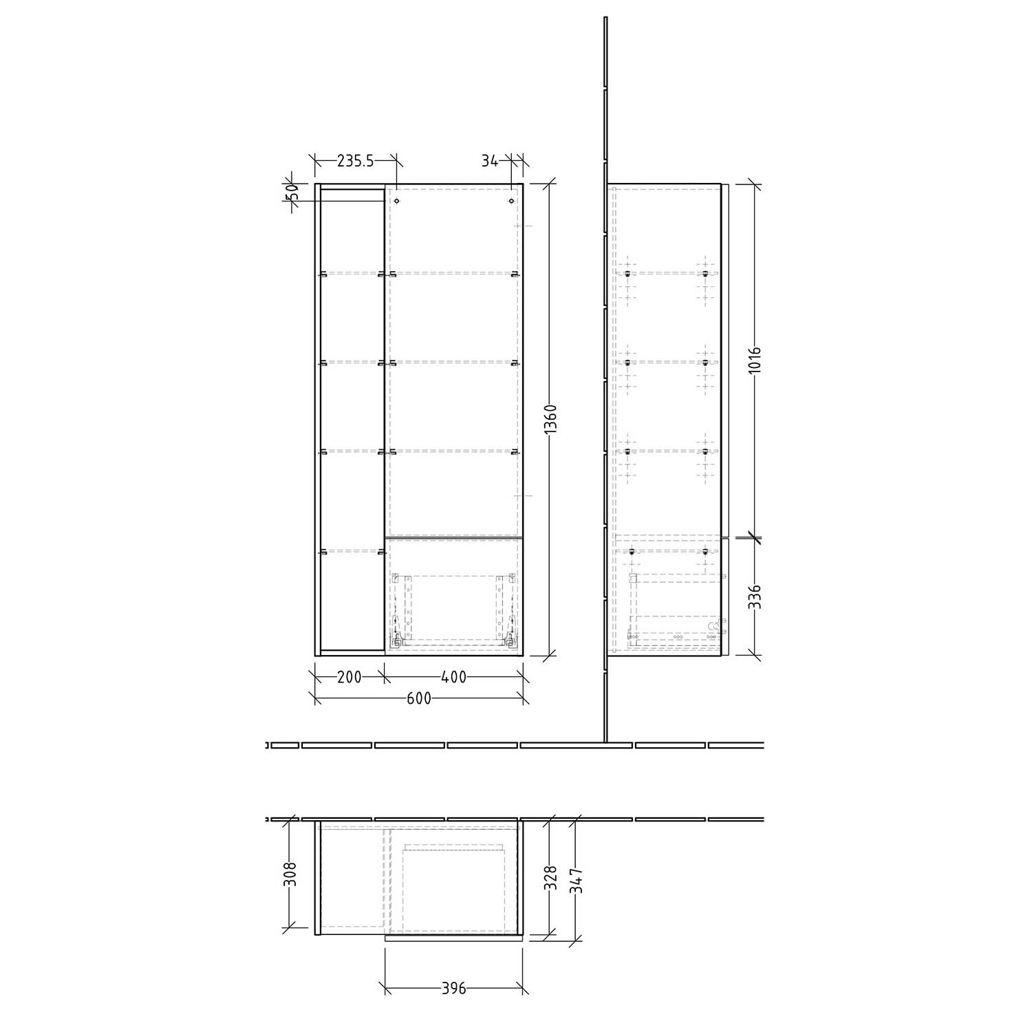 B: 60 T: 34,5 H: 136 cm