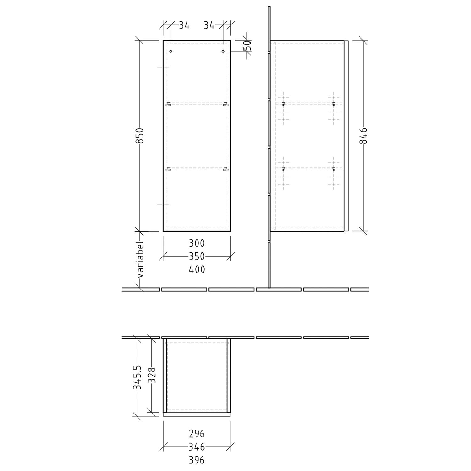 Hinweis: Bei Montage auf Sichthöhe empfehlen wir eine Abdeckplatte. Diese ist nicht im Lieferumfang enthalten, bitte separat bestellen. Es können Farb- und Strukturabweichungen in den Abbildungen möglich sein.