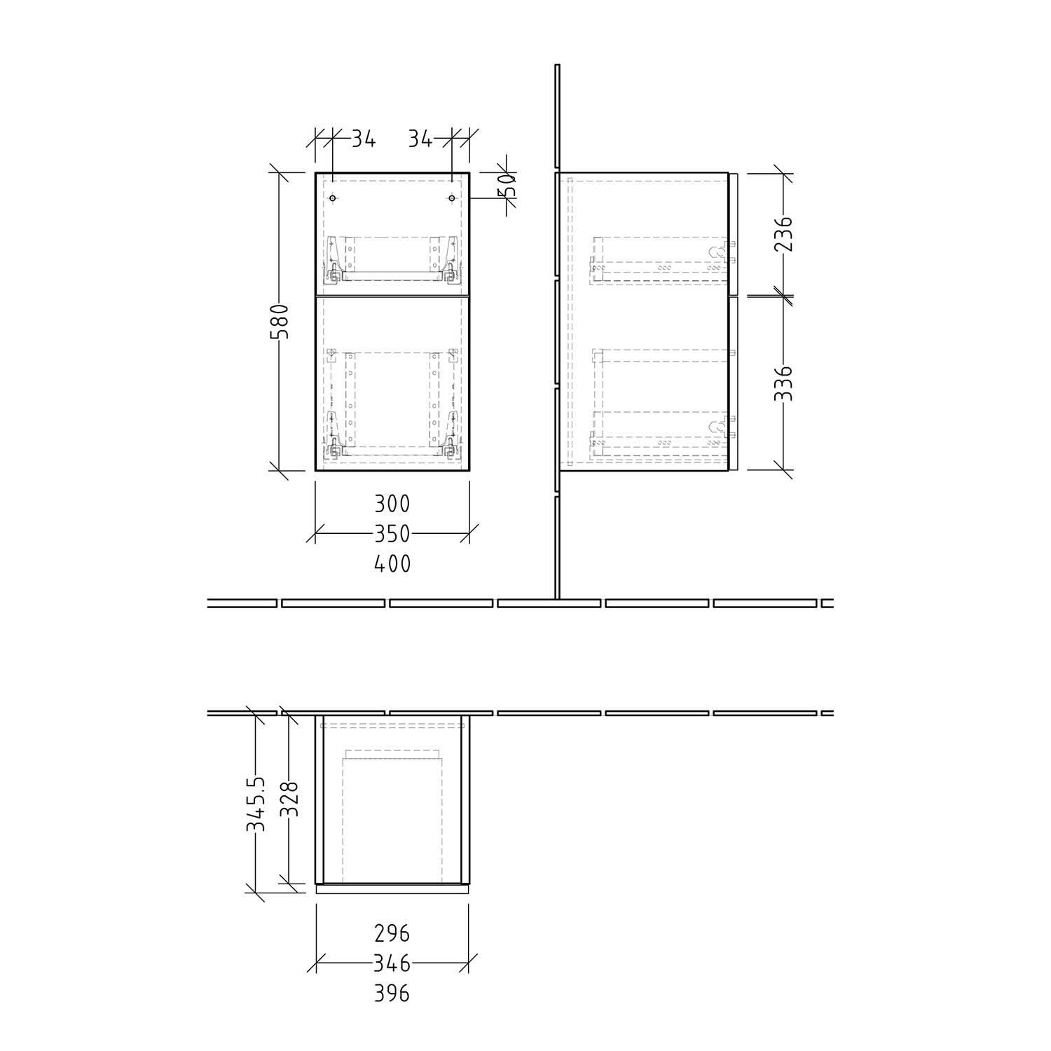 Sanipa 3way Unterschrank 40 cm, 2 Auszüge, Push to open