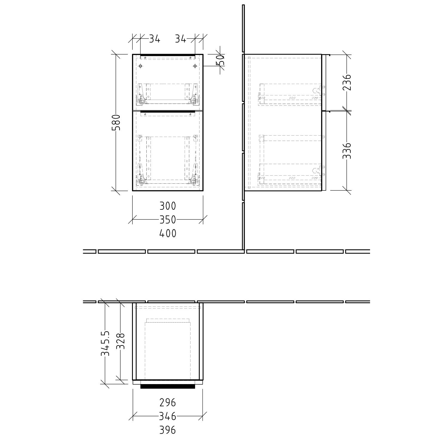 Sanipa 3way Unterschrank 40 cm, 2 Auszüge, mit Aufsatzgriff