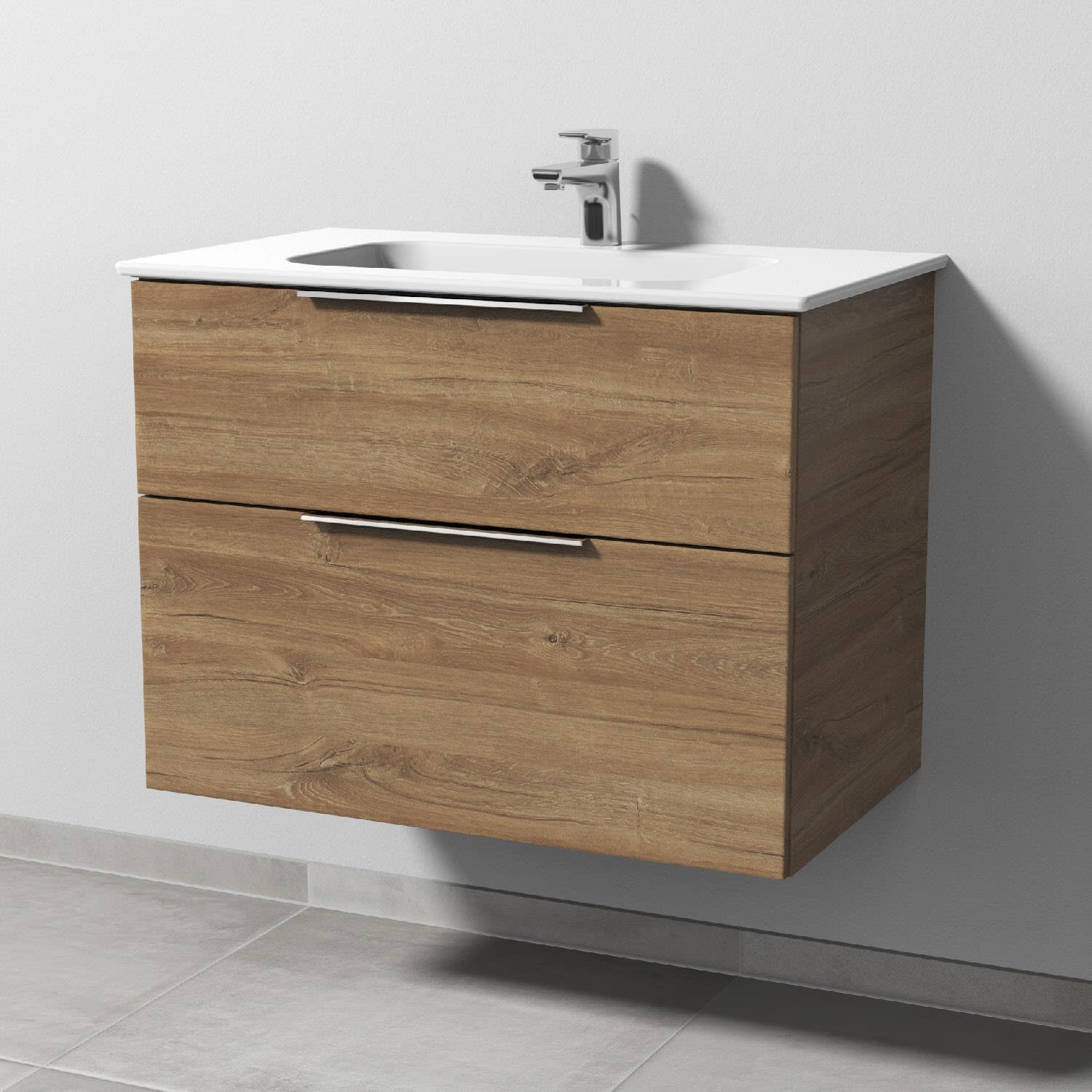 Sanipa 3way Kombination mit Keramikwaschtisch Design 80 cm, 2 Auszüge mit Aufsatz-Griff
