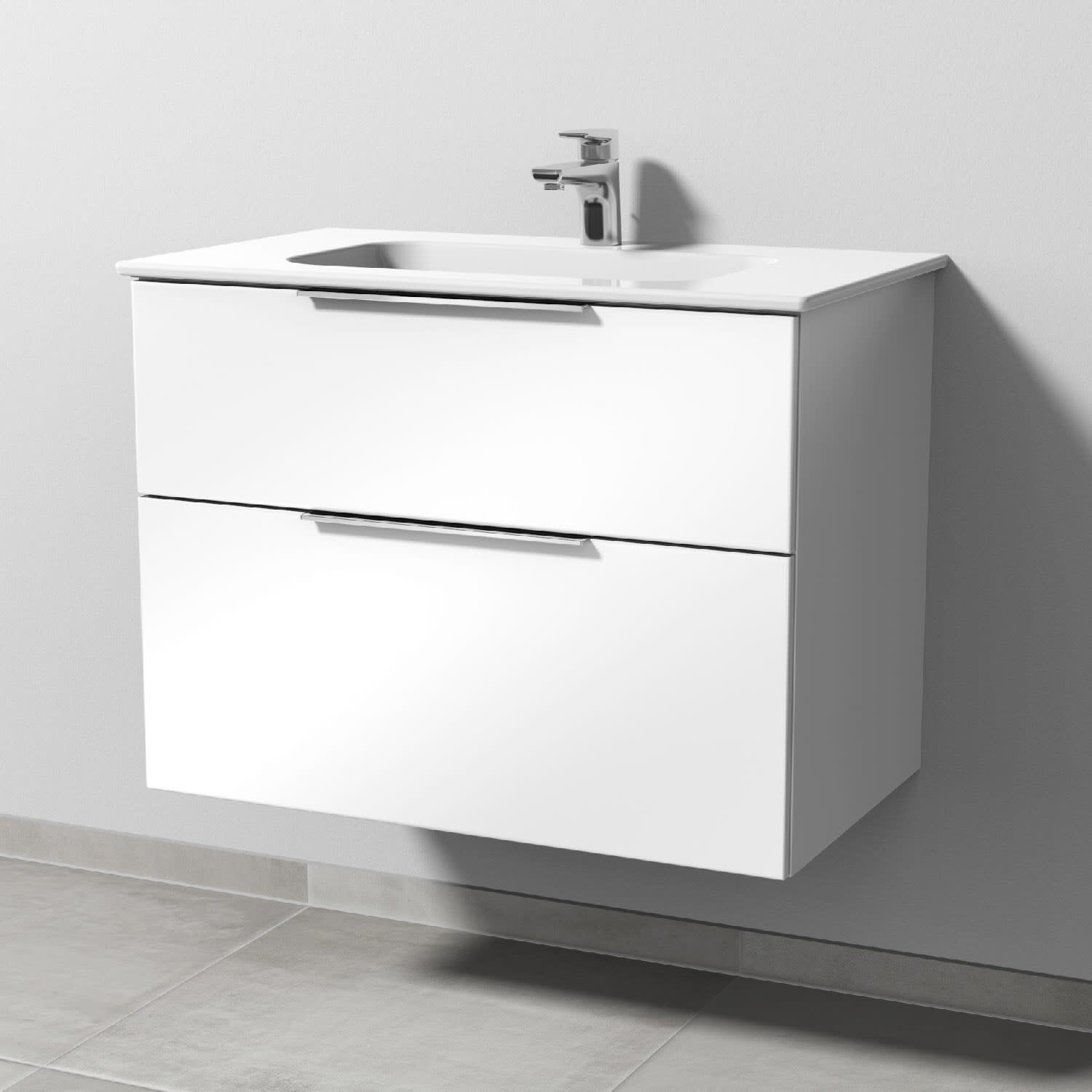 Sanipa 3way Kombination mit Keramikwaschtisch Design 80 cm, 2 Auszüge mit Aufsatz-Griff