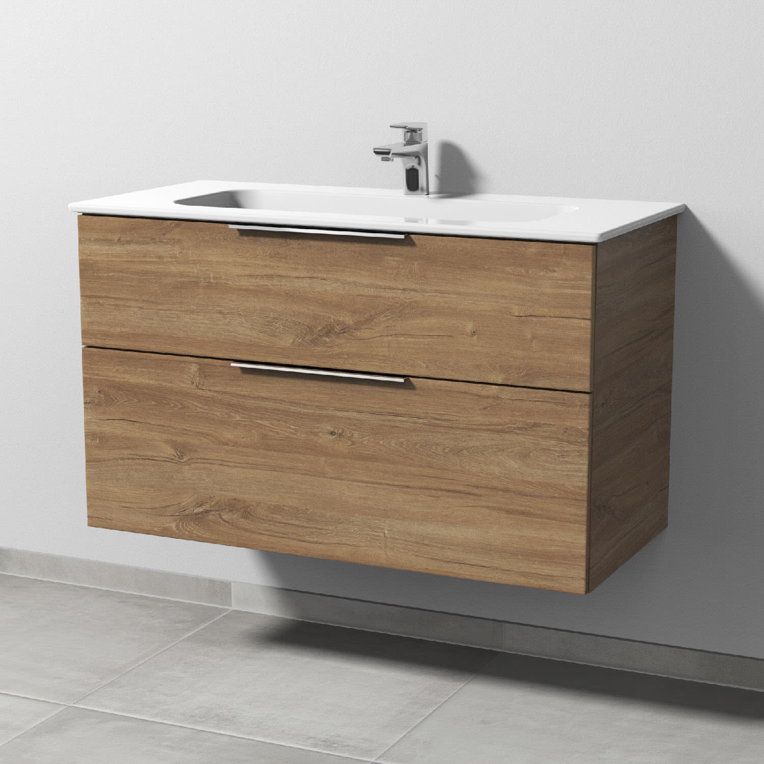 Sanipa 3way Kombination mit Keramikwaschtisch Design 100 cm, 2 Auszüge mit Aufsatz-Griff