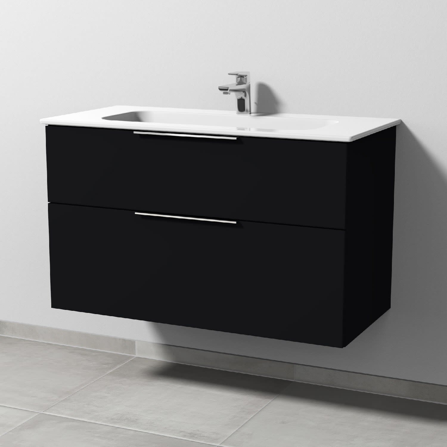 Sanipa 3way Kombination mit Keramikwaschtisch Design 100 cm, 2 Auszüge mit Aufsatz-Griff