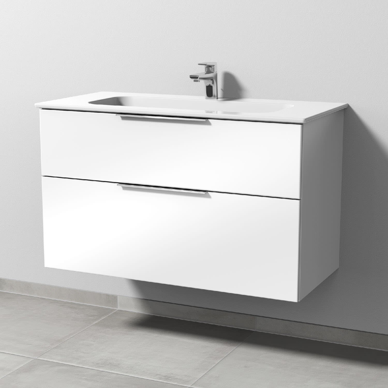 Sanipa 3way Kombination mit Keramikwaschtisch Design 100 cm, 2 Auszüge mit Aufsatz-Griff