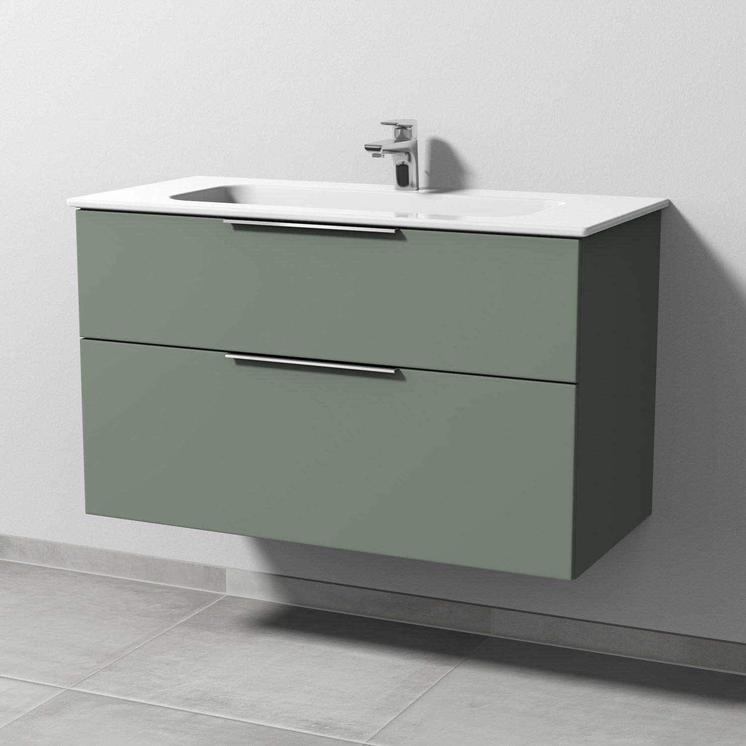 Sanipa 3way Kombination mit Keramikwaschtisch Design 100 cm, 2 Auszüge mit Aufsatz-Griff