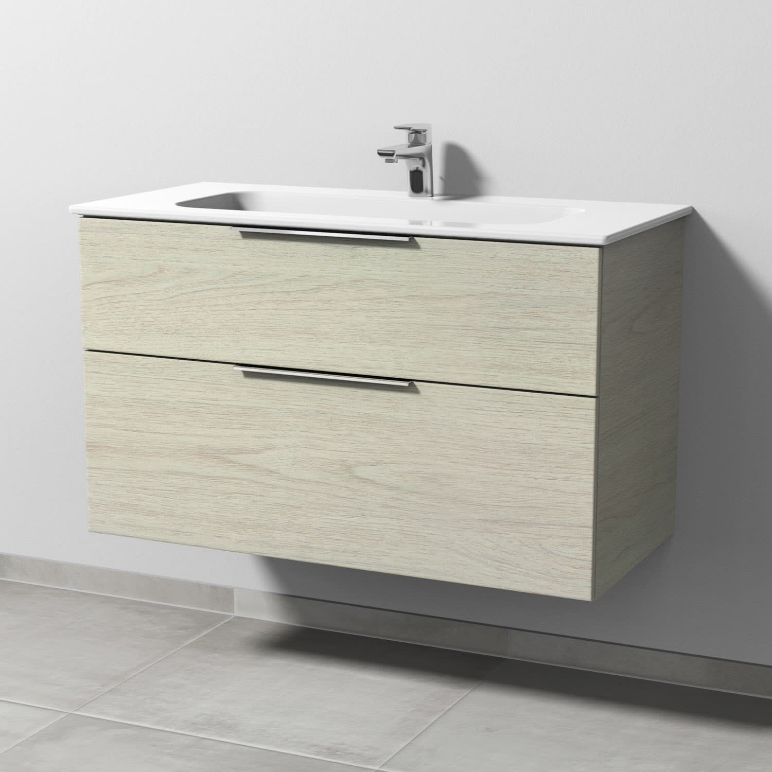 Sanipa 3way Kombination mit Keramikwaschtisch Design 100 cm, 2 Auszüge mit Aufsatz-Griff