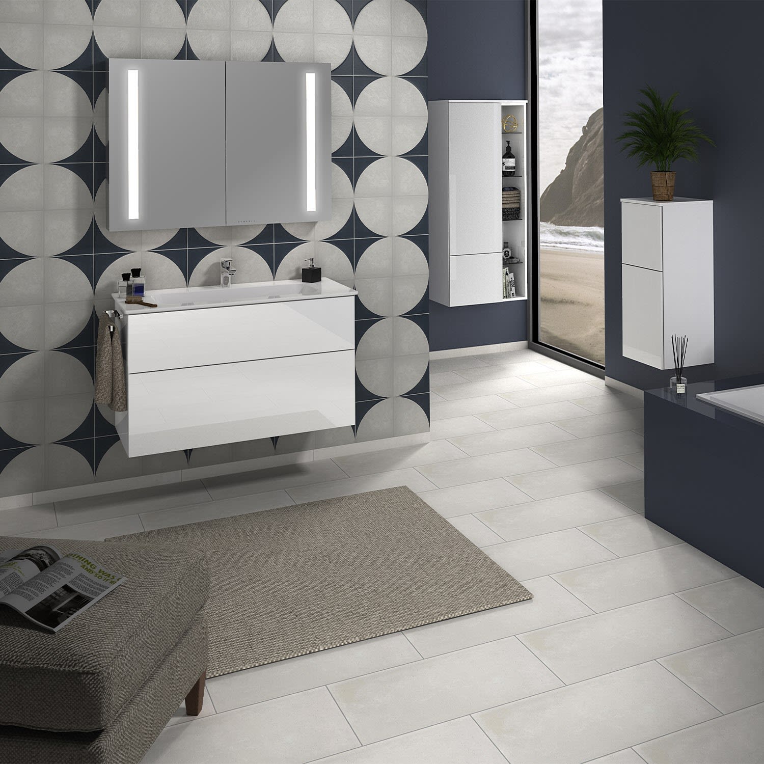 Sanipa 3way Kombination mit Keramikwaschtisch Design 100 cm, 2 Auszüge mit Push to open