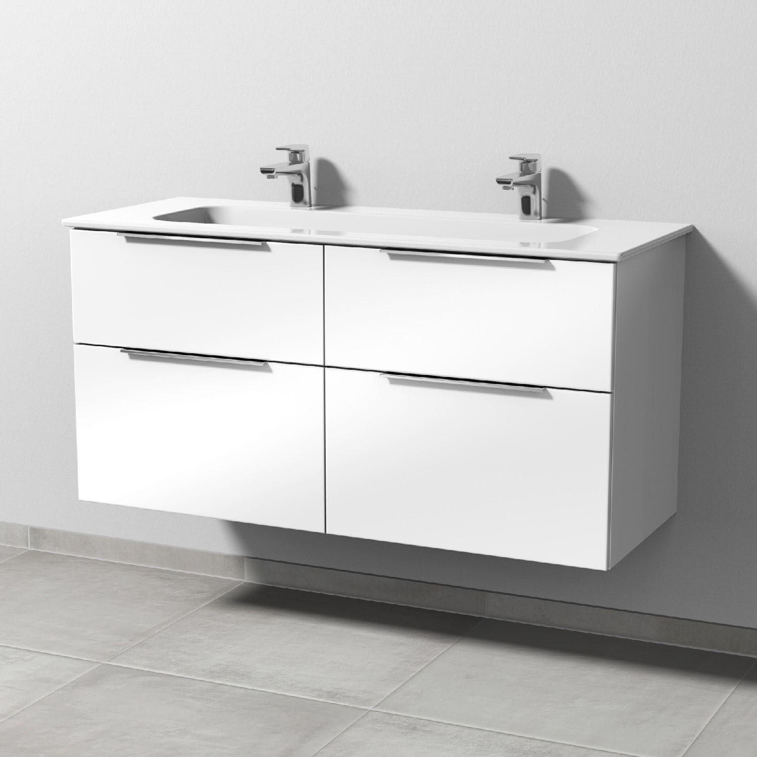 Sanipa 3way Kombination mit Keramik-Doppelwaschtisch Design 120 cm, 4 Auszüge mit Aufsatz-Griff