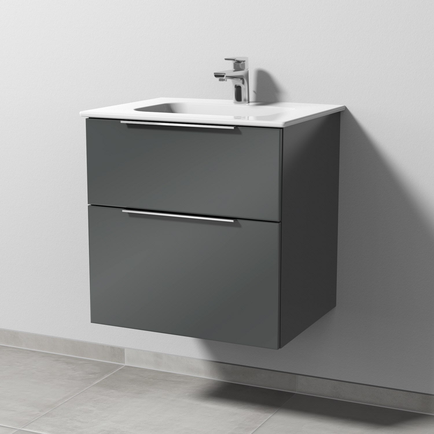 Sanipa 3way Kombination mit Keramikwaschtisch Design 60 cm, 2 Auszüge mit Aufsatz-Griff