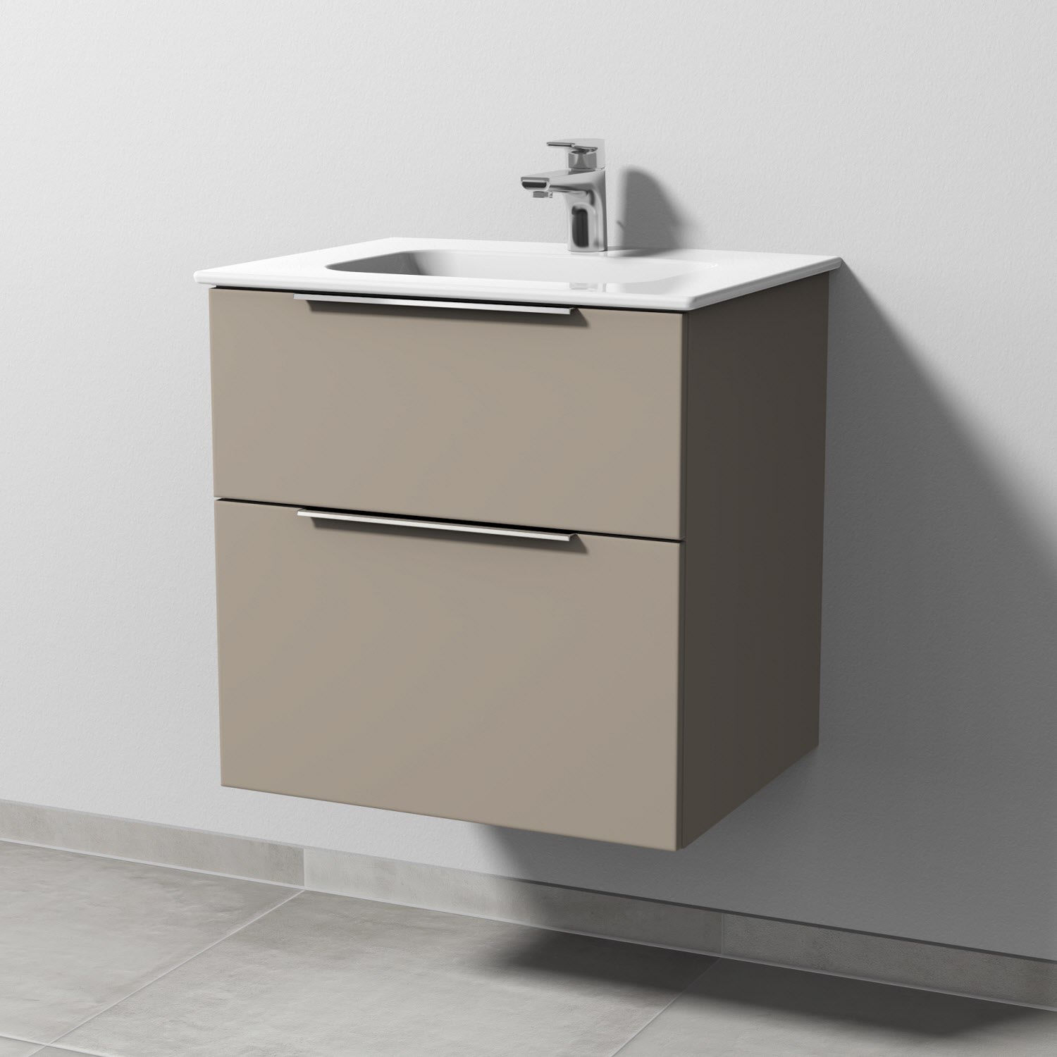Sanipa 3way Kombination mit Keramikwaschtisch Design 60 cm, 2 Auszüge mit Aufsatz-Griff
