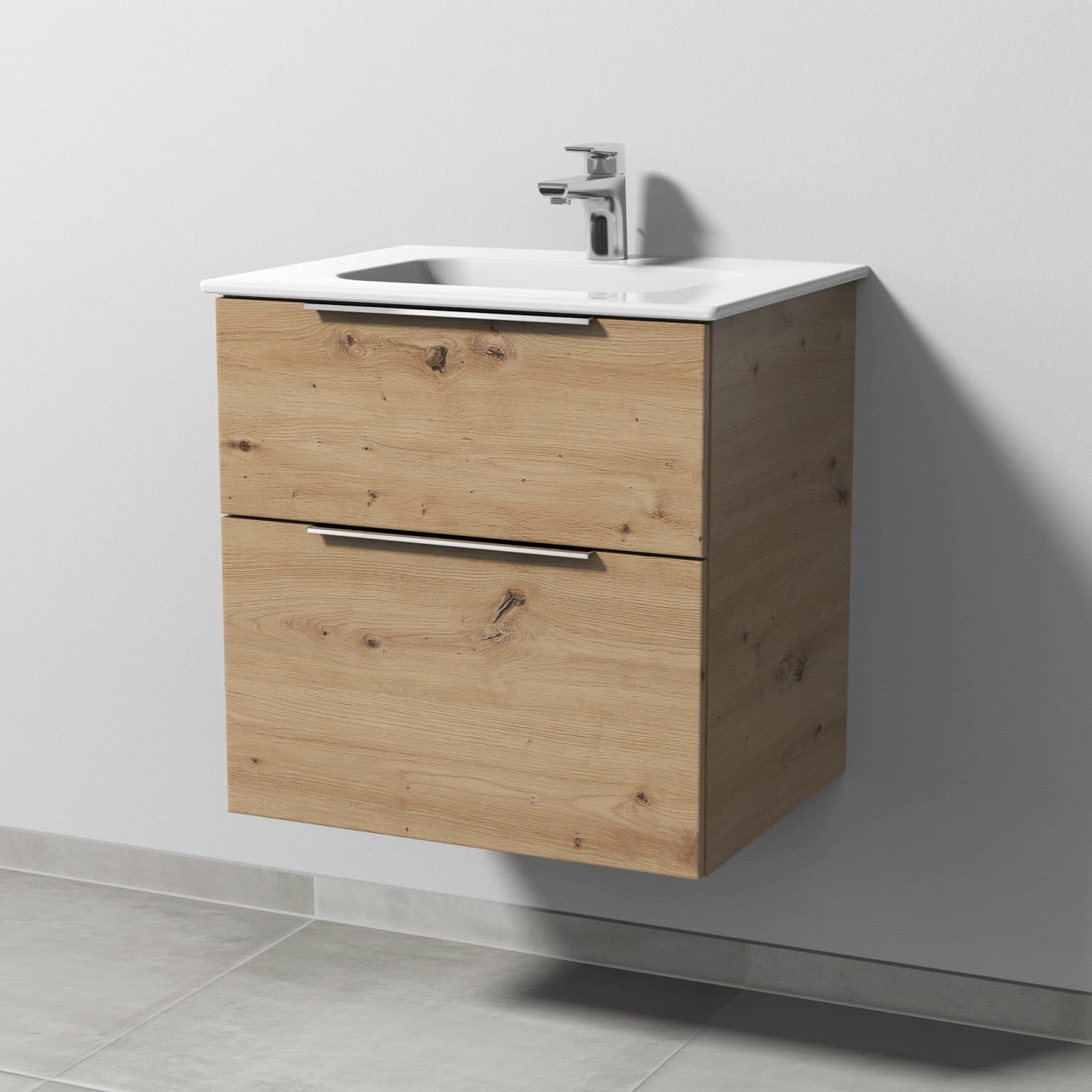 Sanipa 3way Kombination mit Keramikwaschtisch Design 60 cm, 2 Auszüge mit Aufsatz-Griff