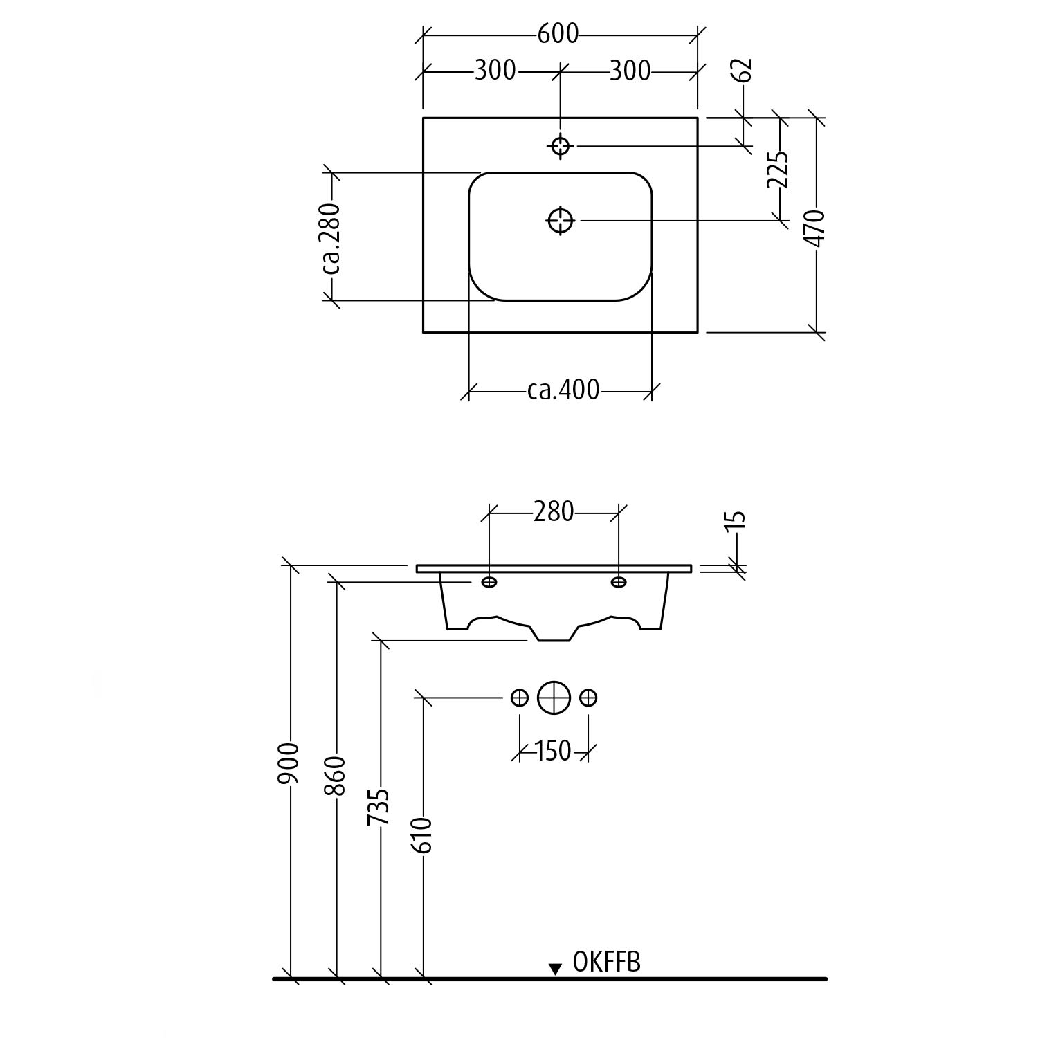 - mit Überlaufloch in Beckenkumme vorne