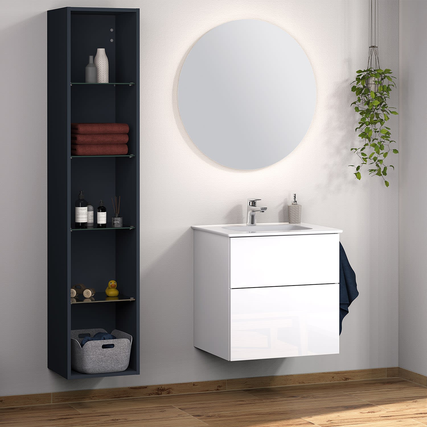 Sanipa 3way Kombination mit Keramikwaschtisch Design 60 cm, 2 Auszüge mit Push to open
