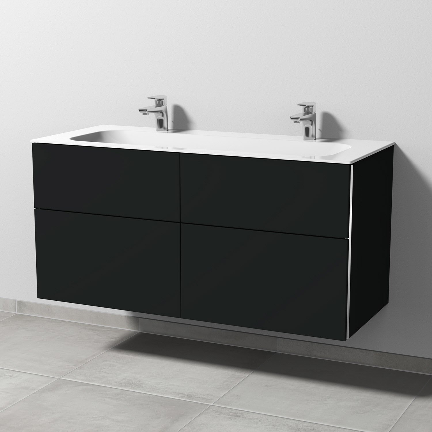 Sanipa 3way Unterschrank 120 cm, 4 Auszüge, Griff-Leisten mit Villeroy & Boch Finion Doppelwaschtisch
