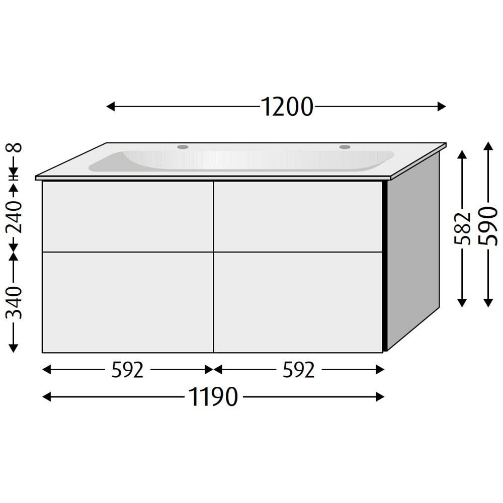 4 Auszüge, mit Griff-Leiste, Doppelwaschtisch