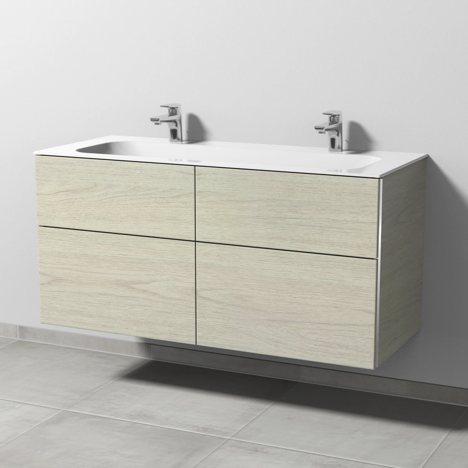 Sanipa 3way Unterschrank 120 cm, 4 Auszüge, Griff-Leisten mit Villeroy & Boch Finion Doppelwaschtisch