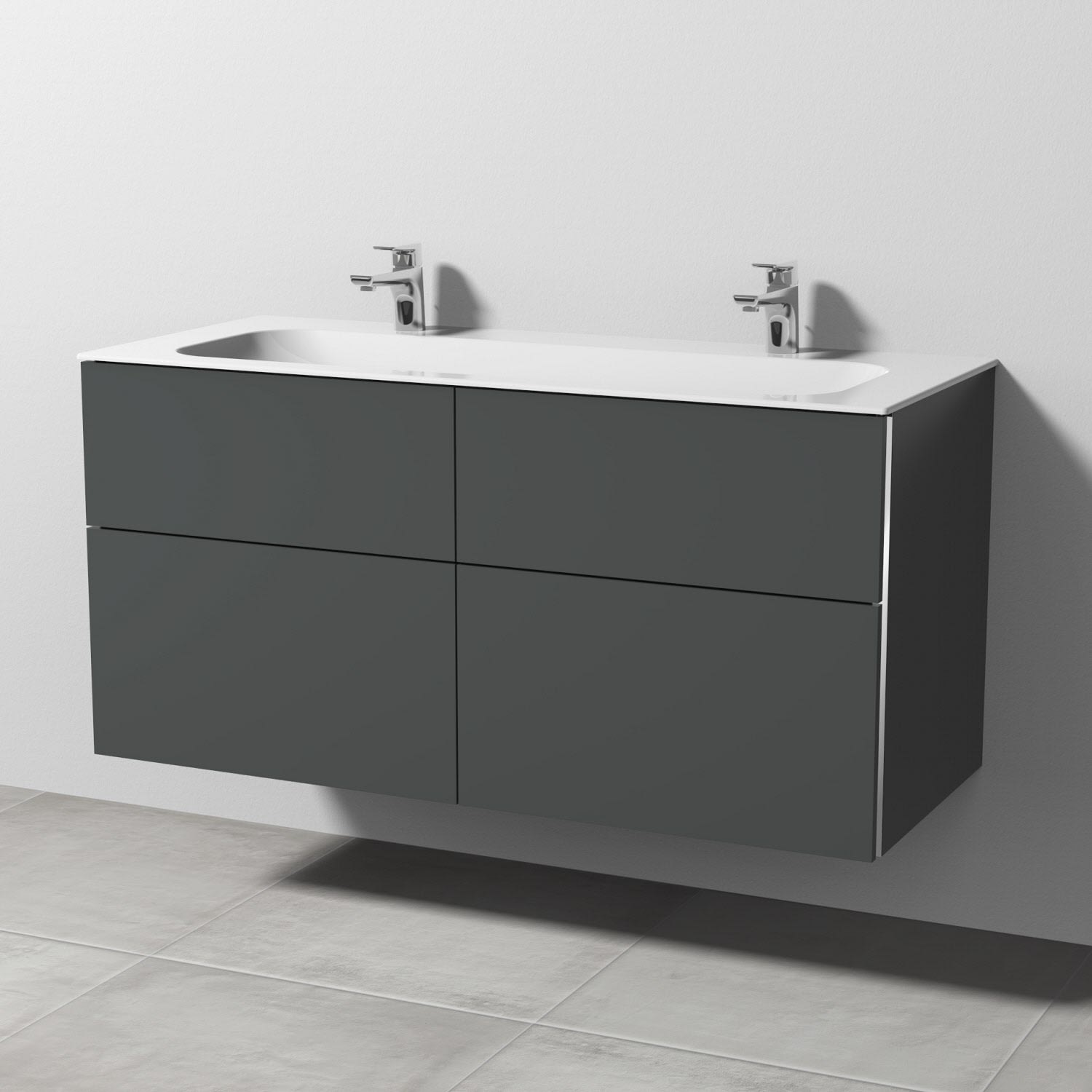Sanipa 3way Unterschrank 120 cm, 4 Auszüge, Griff-Leisten mit Villeroy & Boch Finion Doppelwaschtisch