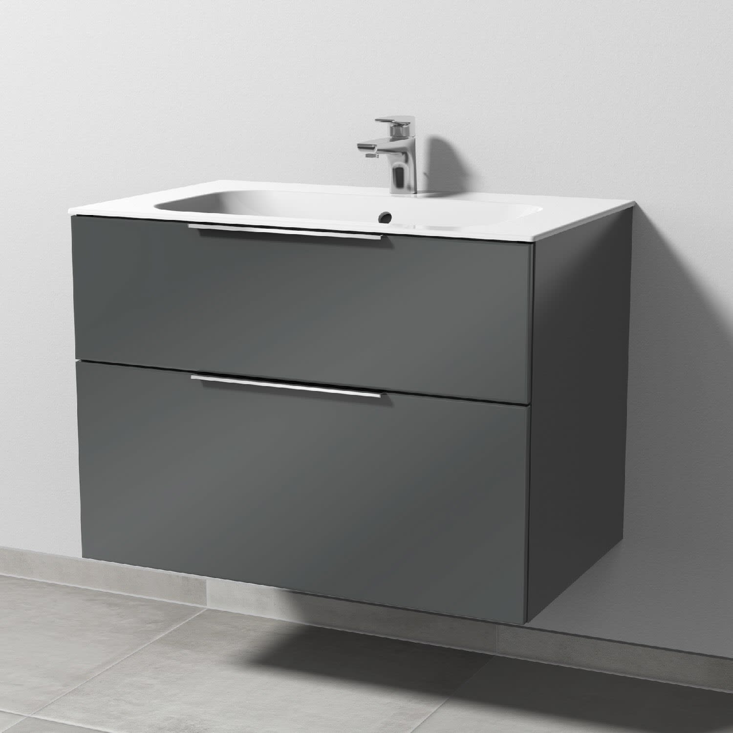 Sanipa 3way Unterschrank 80 cm, 2 Auszüge, Aufsatz-Griffe mit Villeroy & Boch Finion Waschtisch
