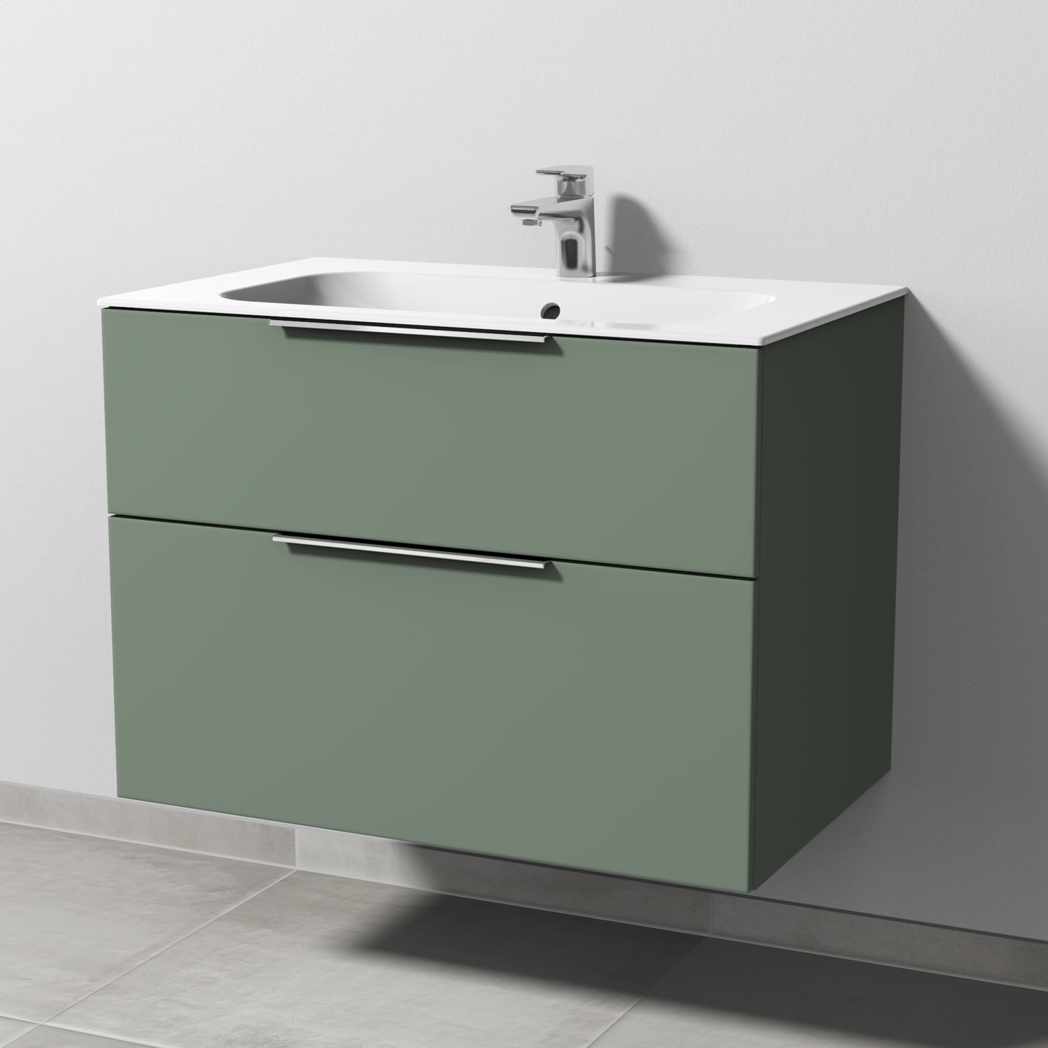 Sanipa 3way Unterschrank 80 cm, 2 Auszüge, Aufsatz-Griffe mit Villeroy & Boch Finion Waschtisch