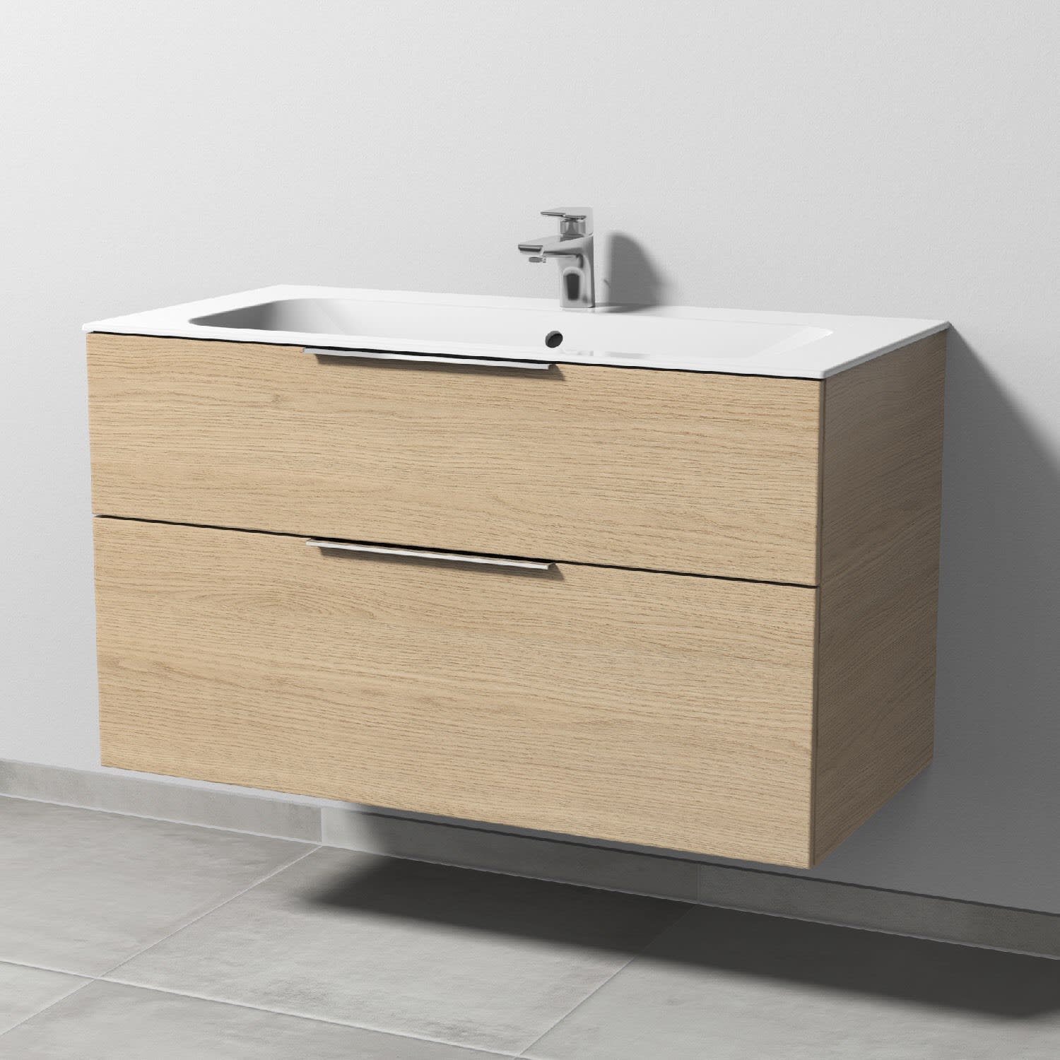 Sanipa 3way Unterschrank 100 cm, 2 Auszüge, Aufsatz-Griffe mit Villeroy & Boch Finion Waschtisch