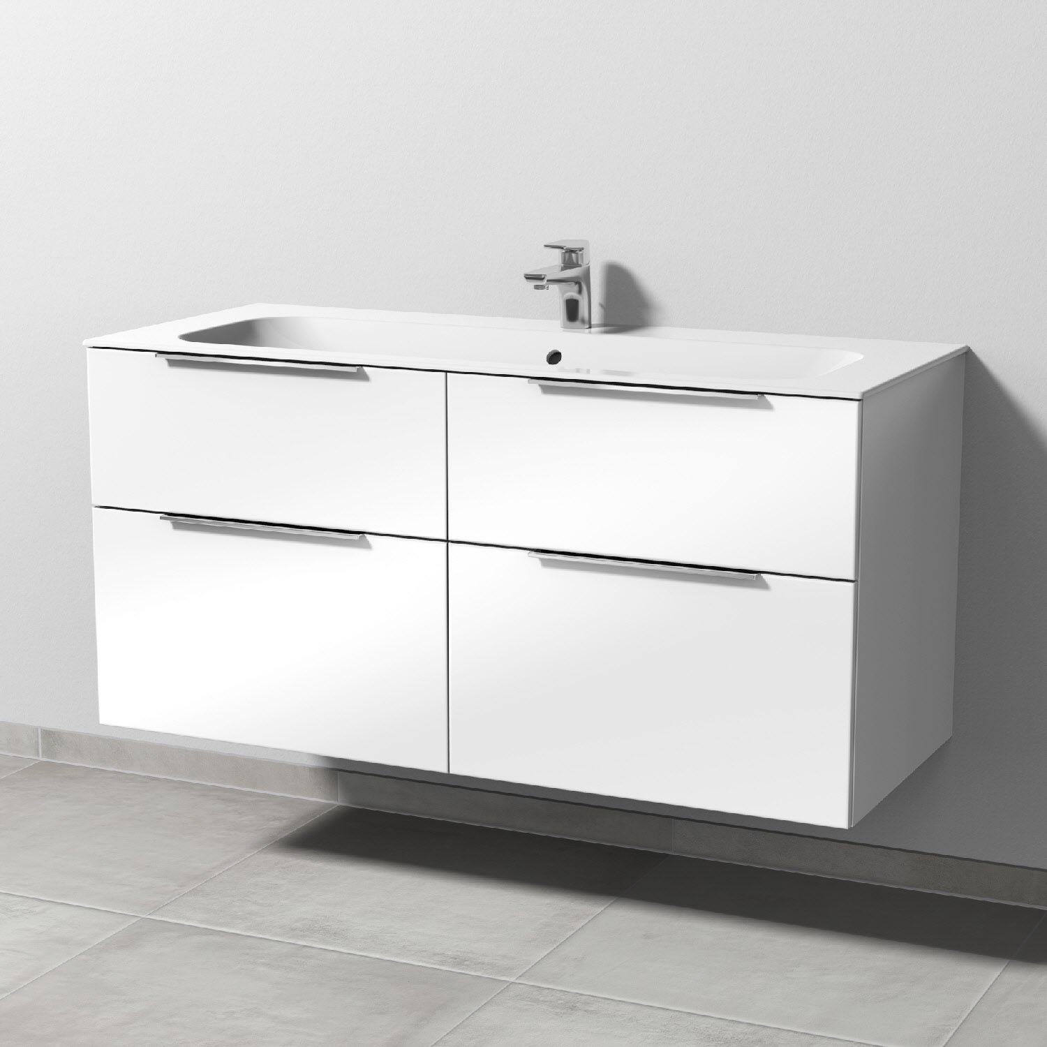 Sanipa 3way Unterschrank 120 cm, 4 Auszüge, Aufsatz-Griffe mit Villeroy & Boch Finion Waschtisch