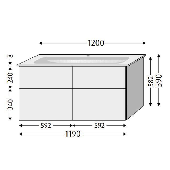 Sanipa 3way Unterschrank 120 cm, 4 Auszüge, Aufsatz-Griffe mit Villeroy & Boch Finion Waschtisch
