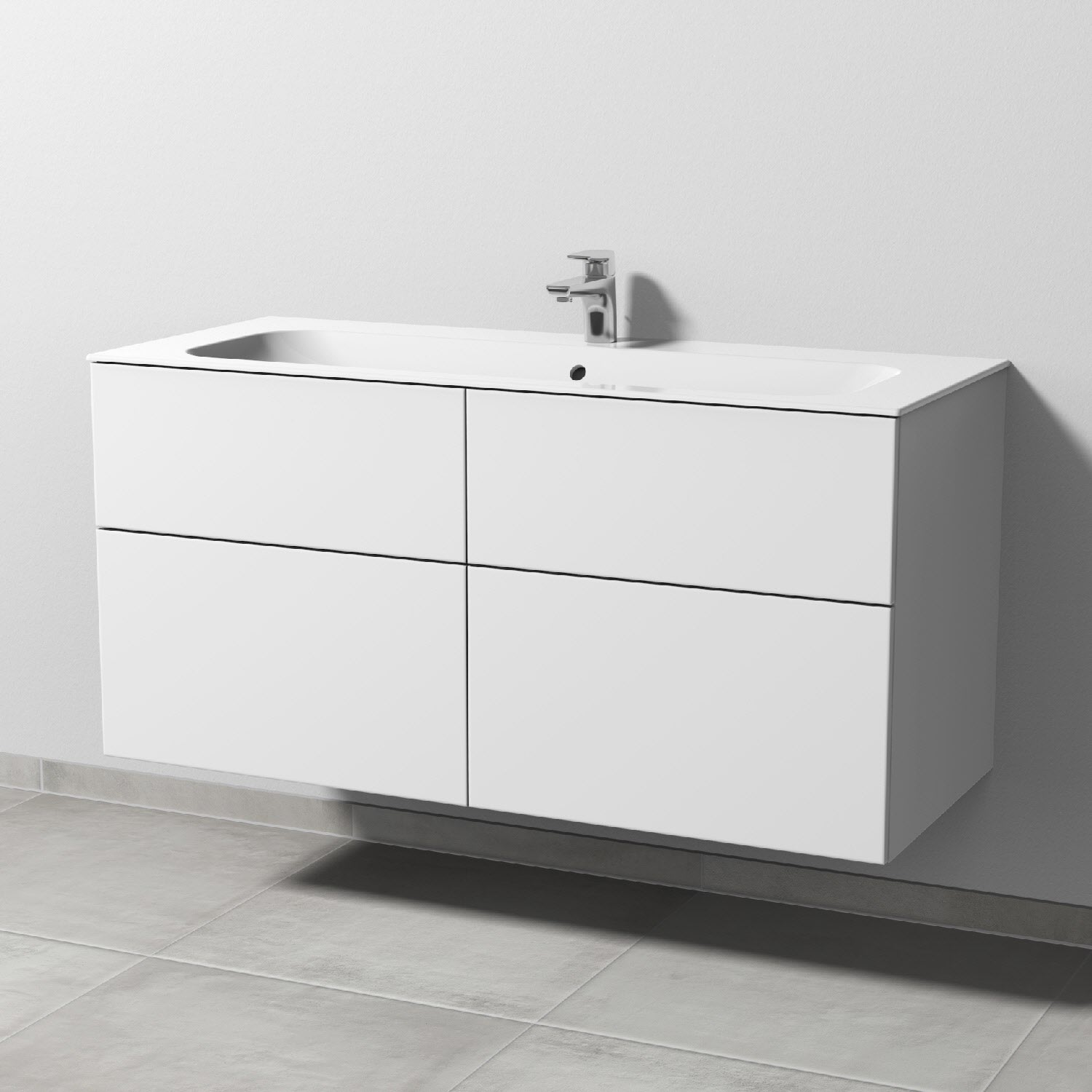 Sanipa 3way Unterschrank 120 cm, 4 Auszüge, Push to open mit Villeroy & Boch Finion Waschtisch