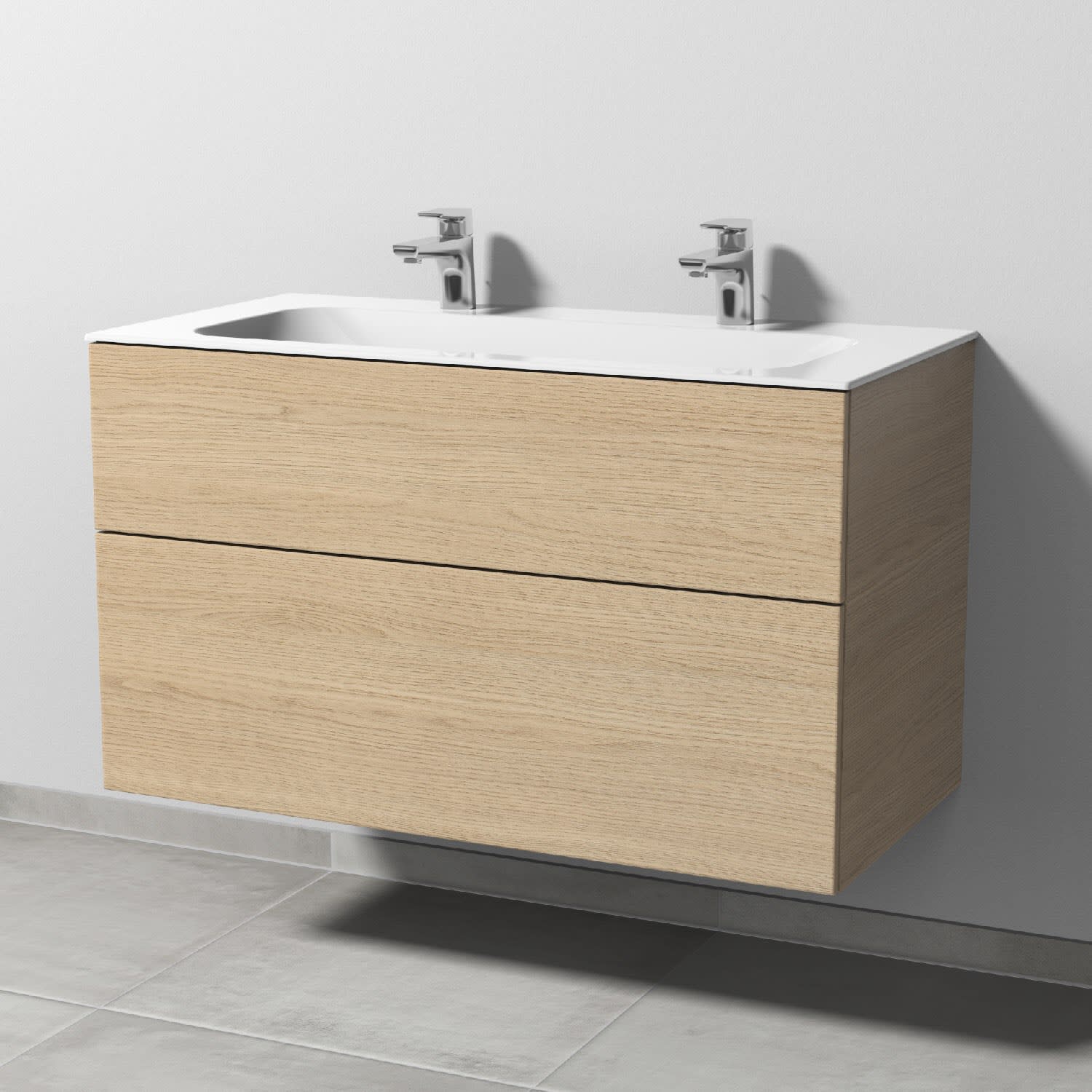 Sanipa 3way Unterschrank 100 cm, 2 Auszüge, Push to open mit Villeroy & Boch Finion Doppelwaschtisch