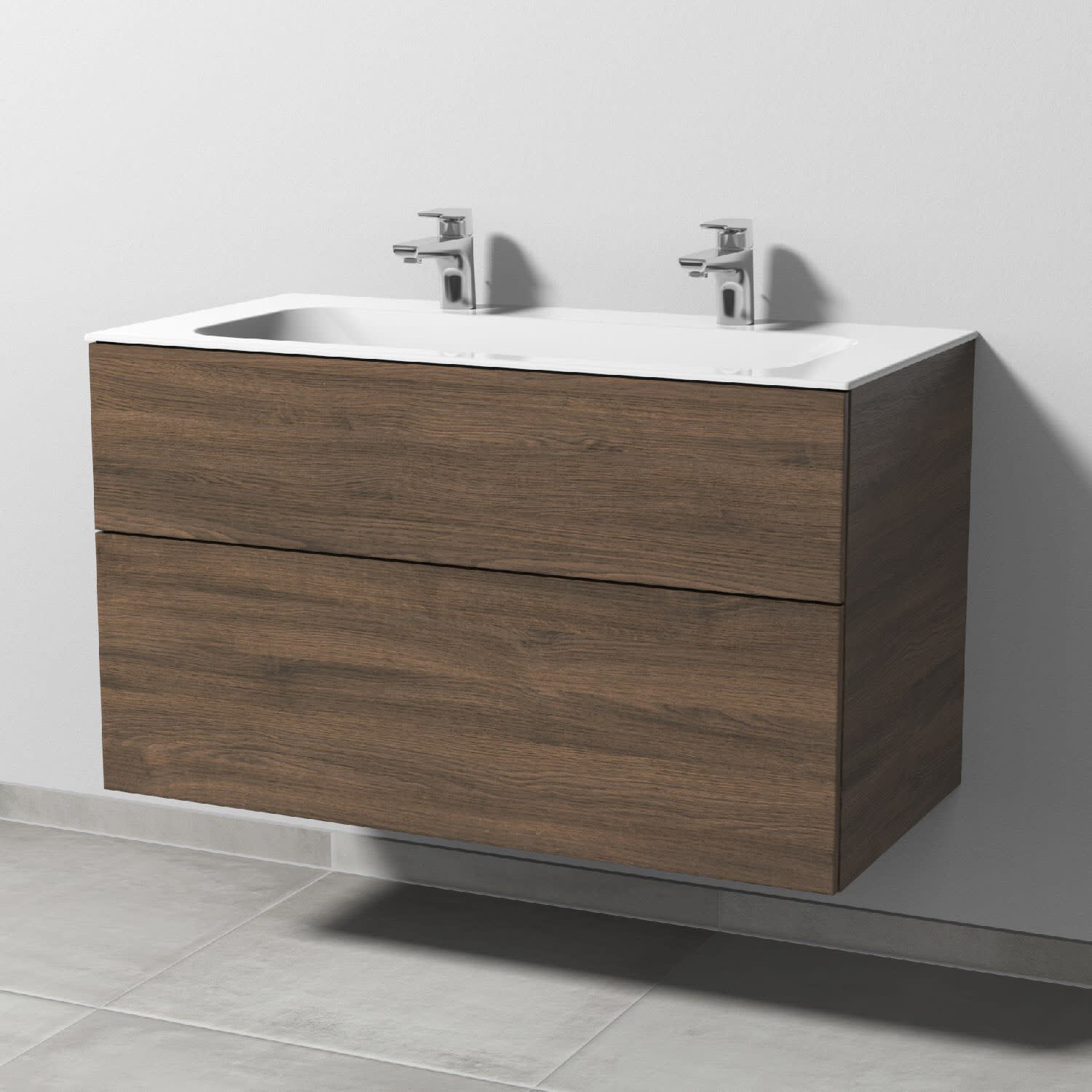 Sanipa 3way Unterschrank 100 cm, 2 Auszüge, Push to open mit Villeroy & Boch Finion Doppelwaschtisch
