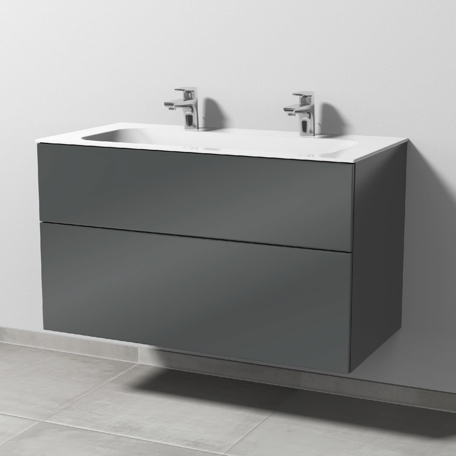 Sanipa 3way Unterschrank 100 cm, 2 Auszüge, Push to open mit Villeroy & Boch Finion Doppelwaschtisch