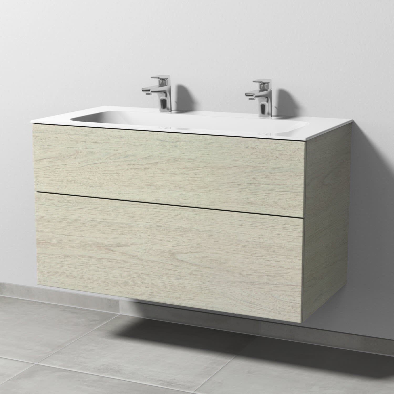 Sanipa 3way Unterschrank 100 cm, 2 Auszüge, Push to open mit Villeroy & Boch Finion Doppelwaschtisch
