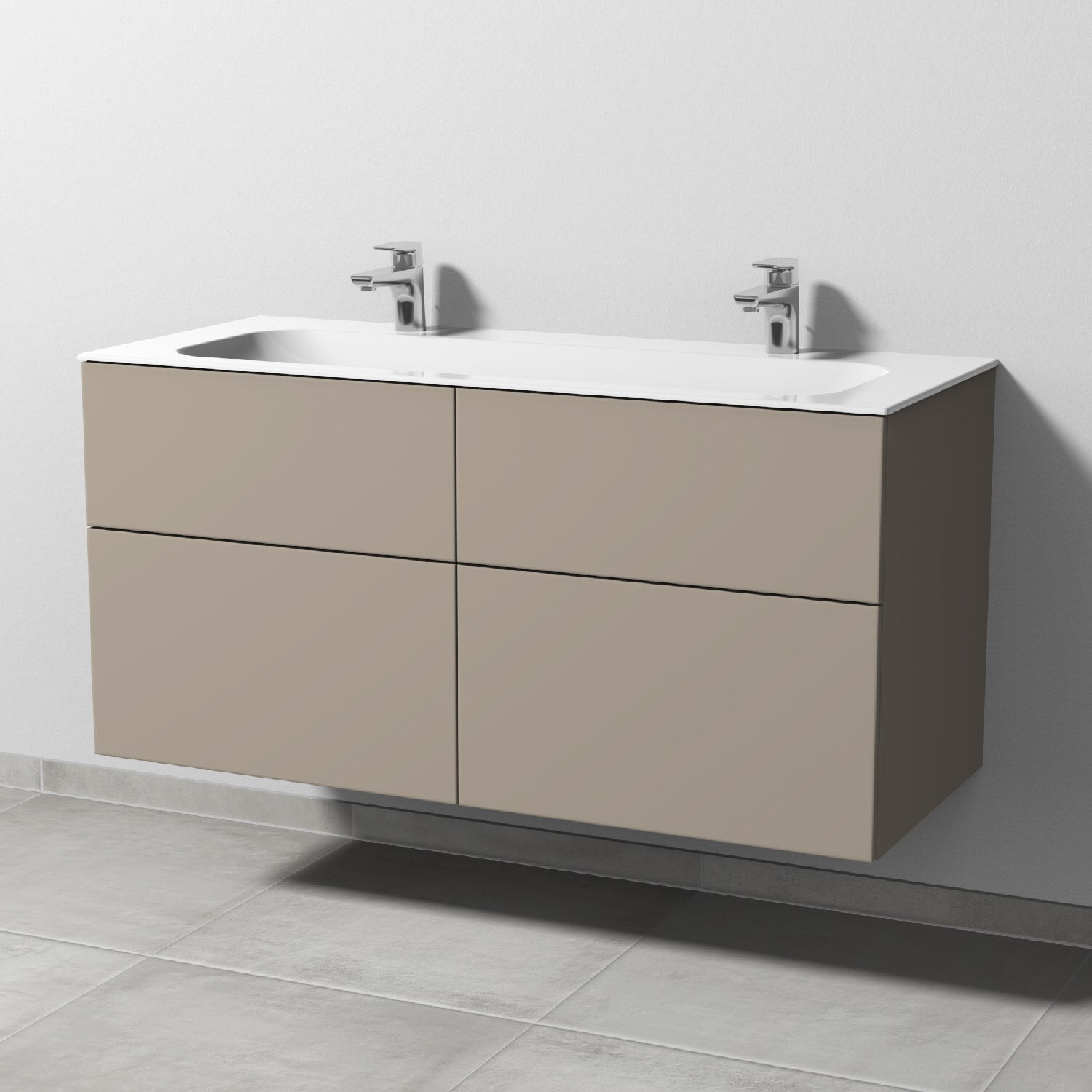 Sanipa 3way Unterschrank 120 cm, 4 Auszüge, Push to open mit Villeroy & Boch Finion Doppelwaschtisch